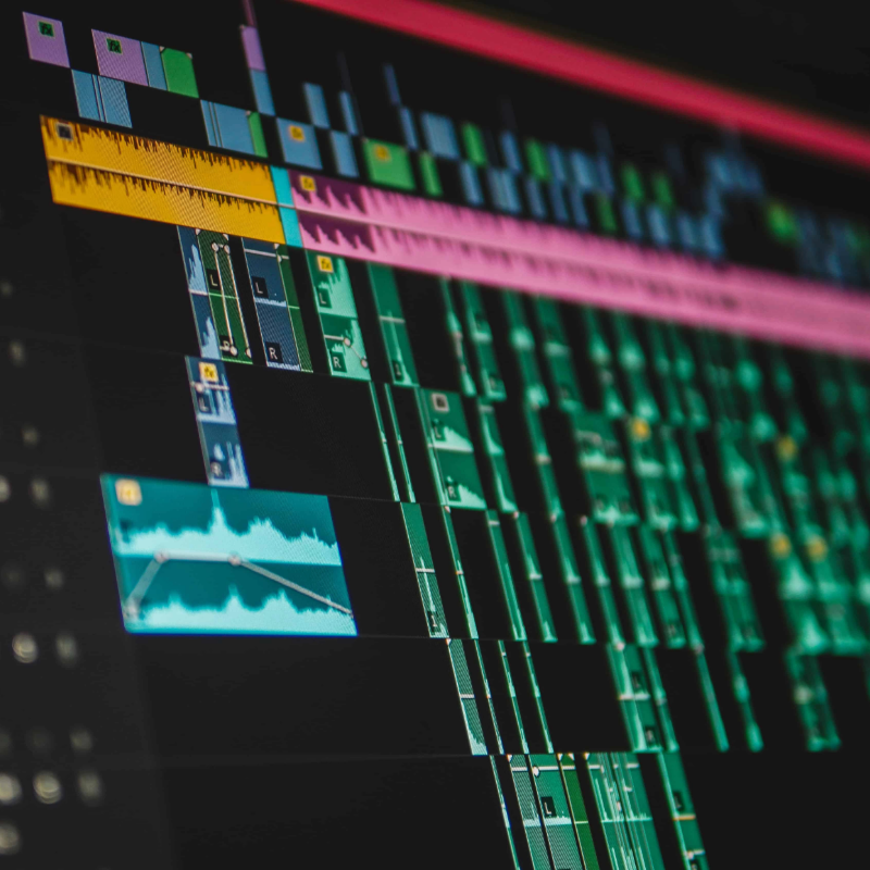- Timeline, trimming, transitions, sound sync